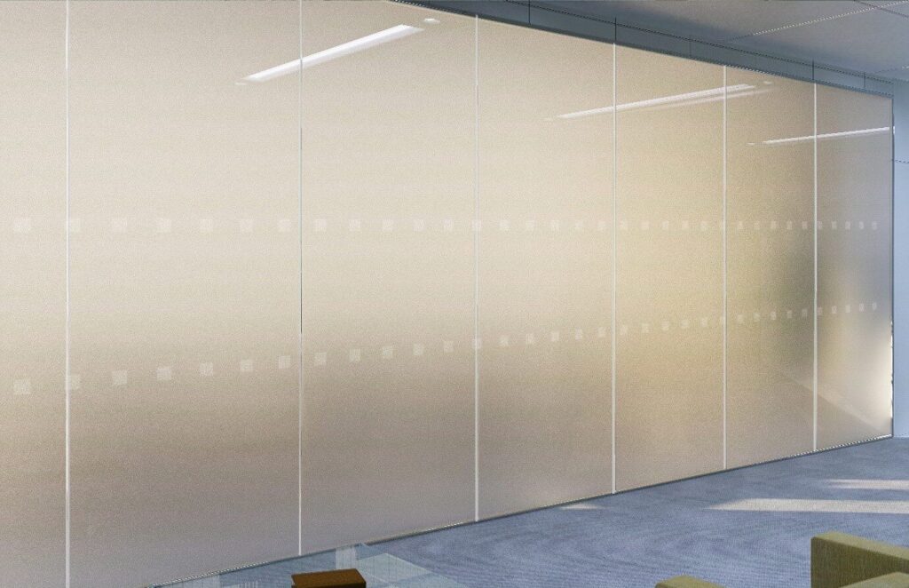 Üvegfelületre rögzíthető, kapcsolható átlátszóságú megoldás térelválasztáshoz.át.